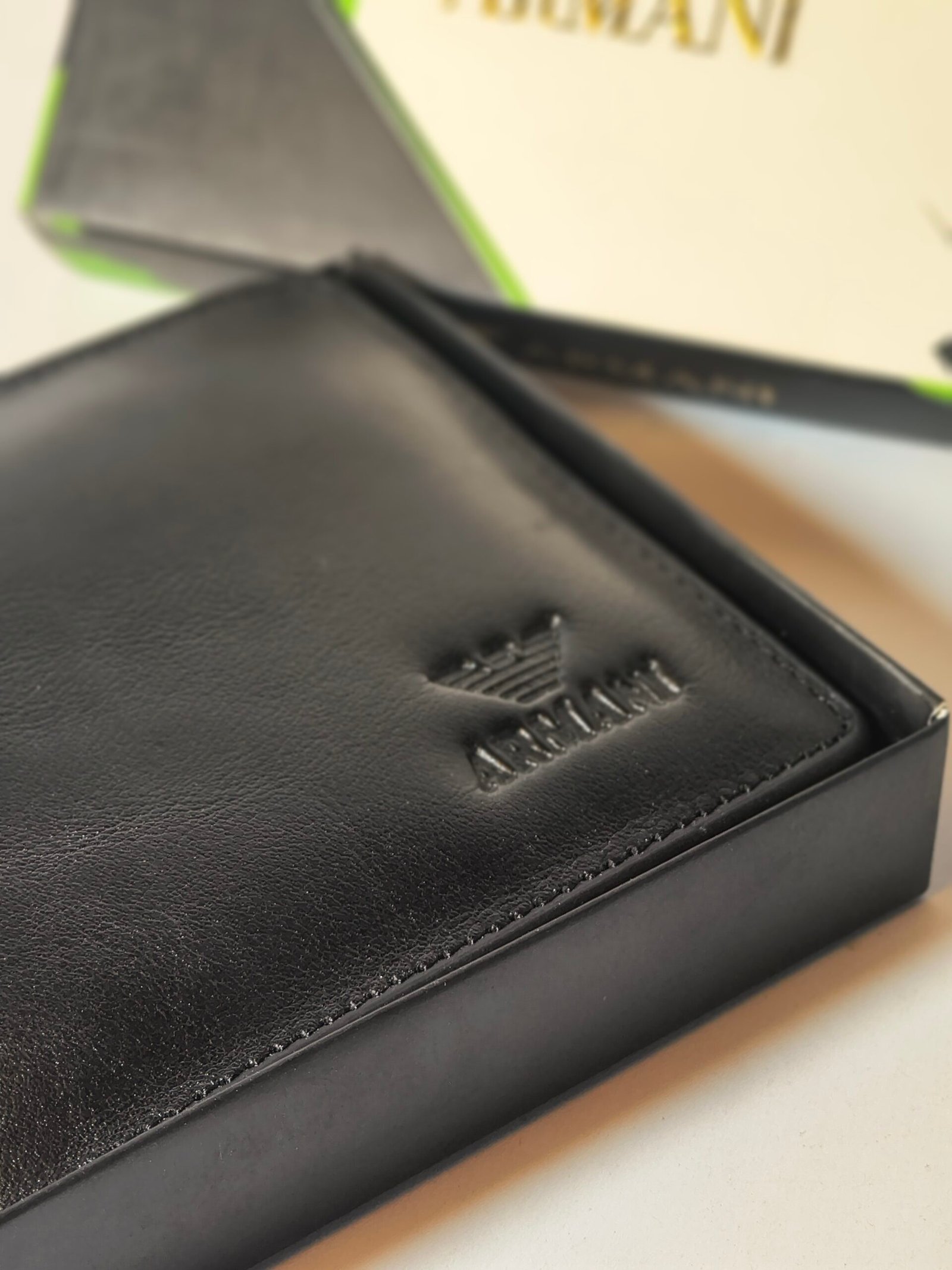 Design: Slim bi-fold design with minimalist sophistication