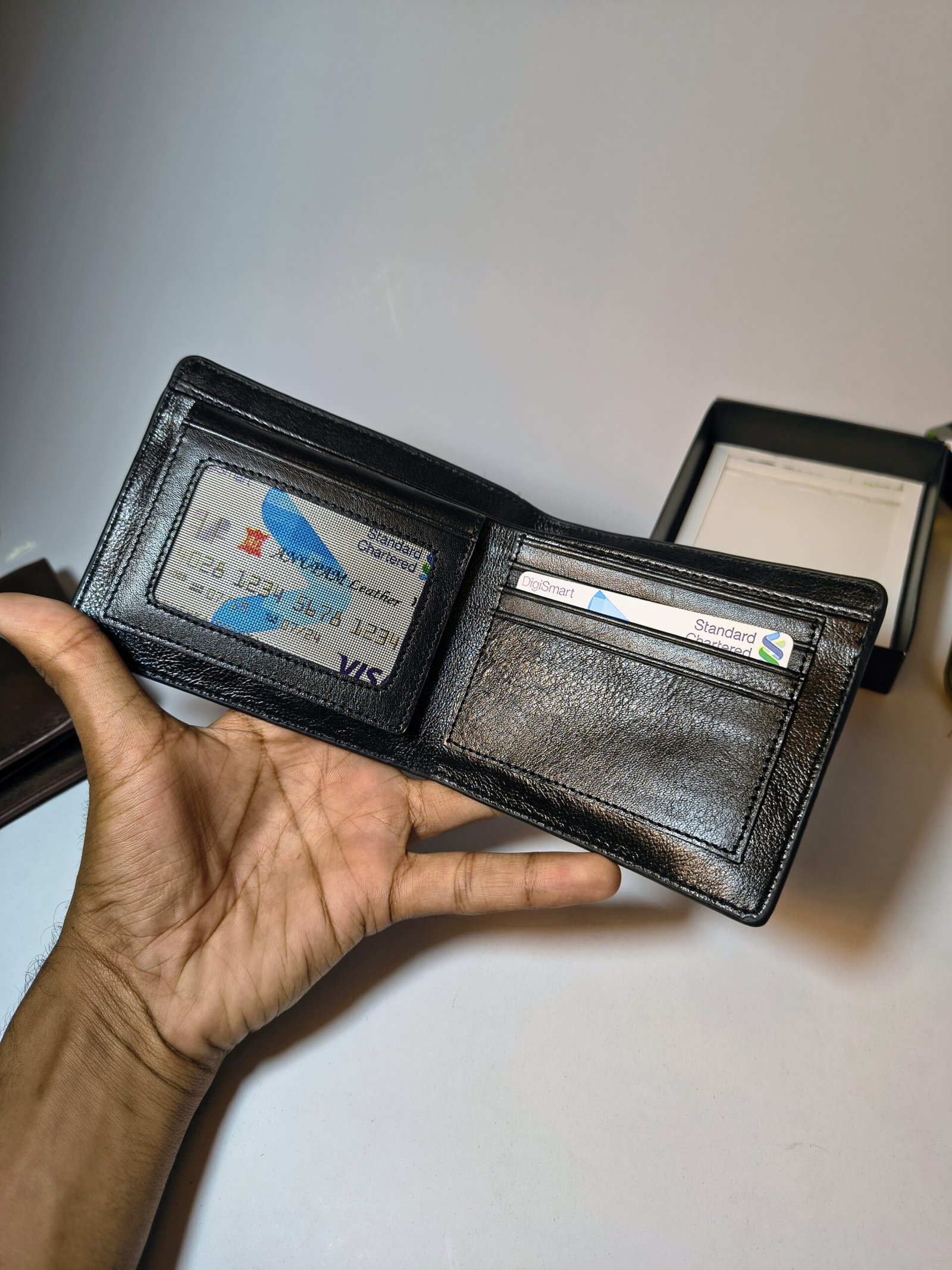 আপনার প্রতিদিনের স্টাইলকে আরও উন্নত করুন এই প্রিমিয়াম মানের কালো লেদার ওয়ালেটের মাধ্যমে। আধুনিক ভদ্রলোকের জন্য বিশেষভাবে তৈরি এই ওয়ালেটটি উচ্চমানের জেনুইন লেদার দিয়ে তৈরি, যার মসৃণ ফিনিশ এবং মজবুত সেলাই দীর্ঘস্থায়ী ব্যবহার নিশ্চিত করে। এর মিনিমালিস্টিক ও পরিশীলিত ডিজাইন যেকোনো অনুষ্ঠানে মানানসই, যা আপনাকে দেবে আভিজাত্যের স্পর্শ।