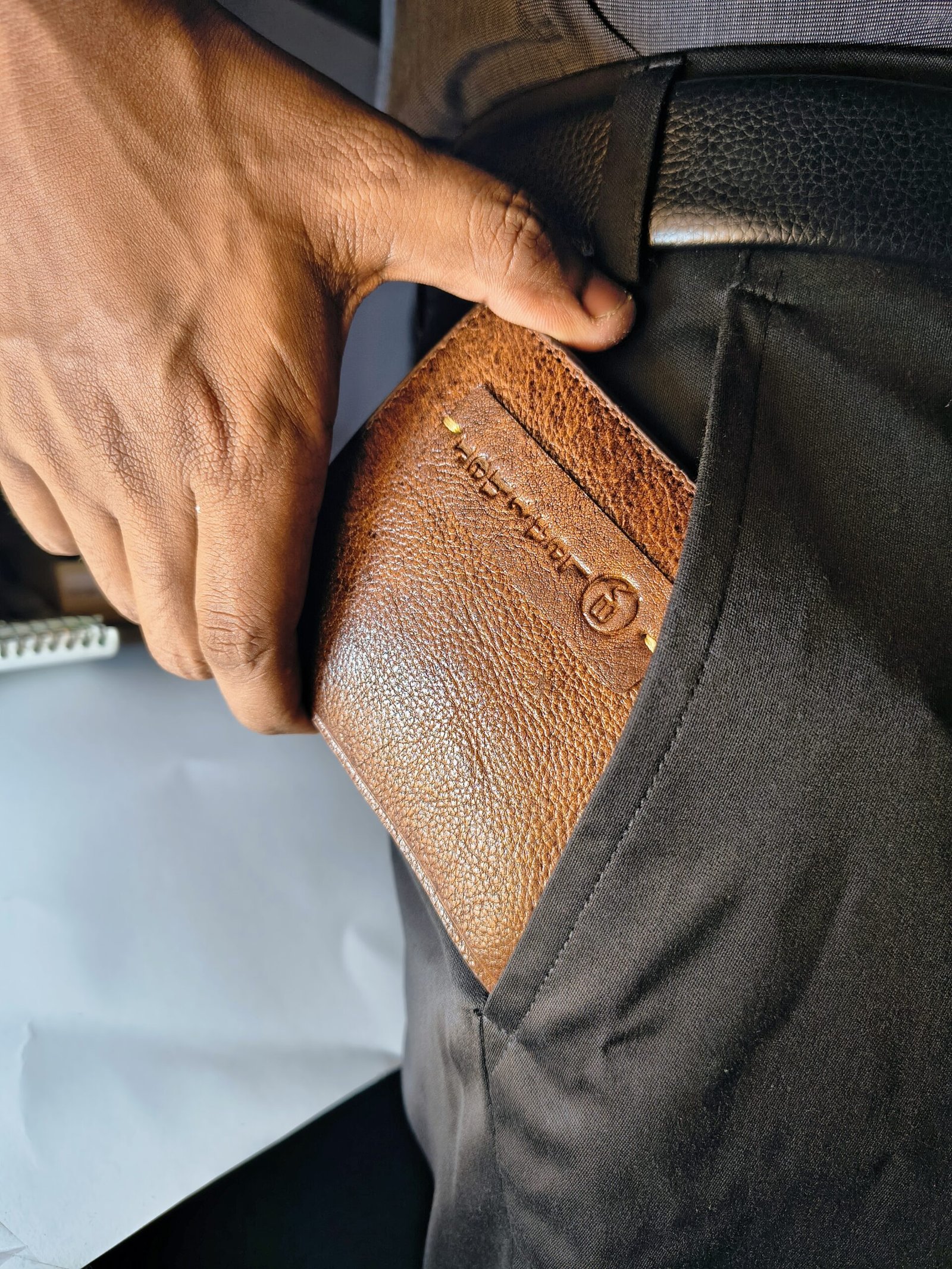 This premium bi-fold black leather wallet combines elegance, durability, and functionality. Made from high-quality textured leather, it offers a sleek and professional look while ensuring long-lasting use.