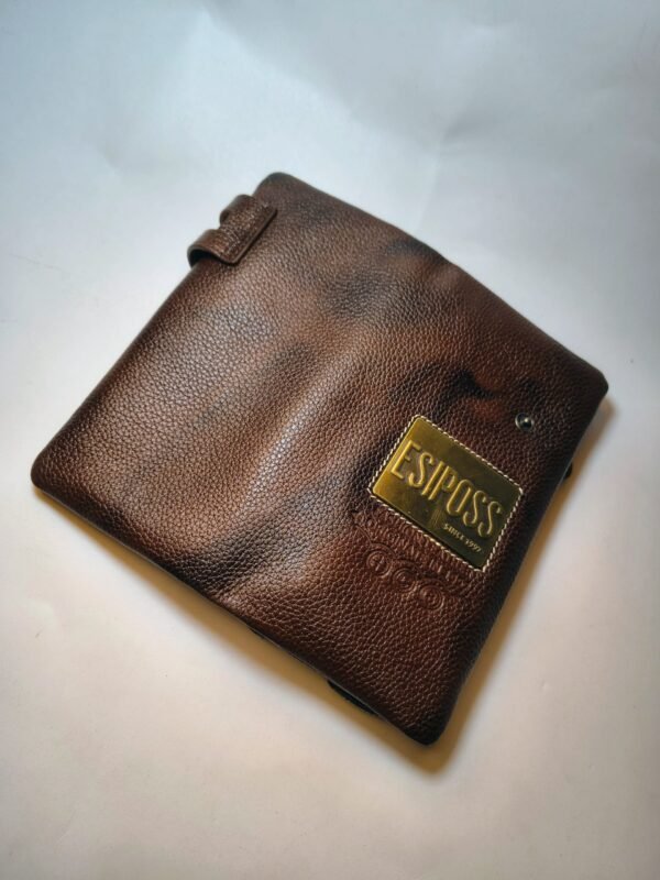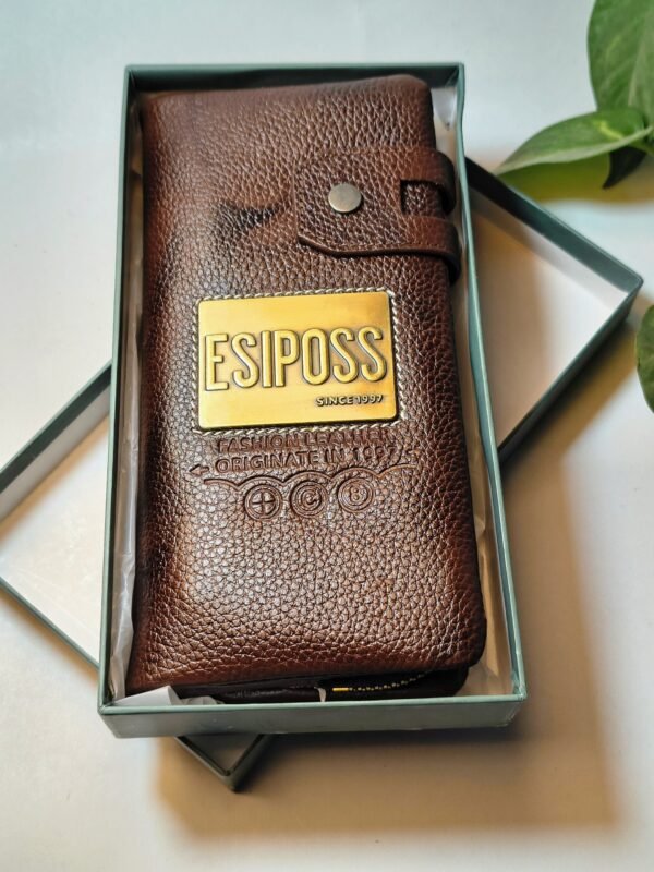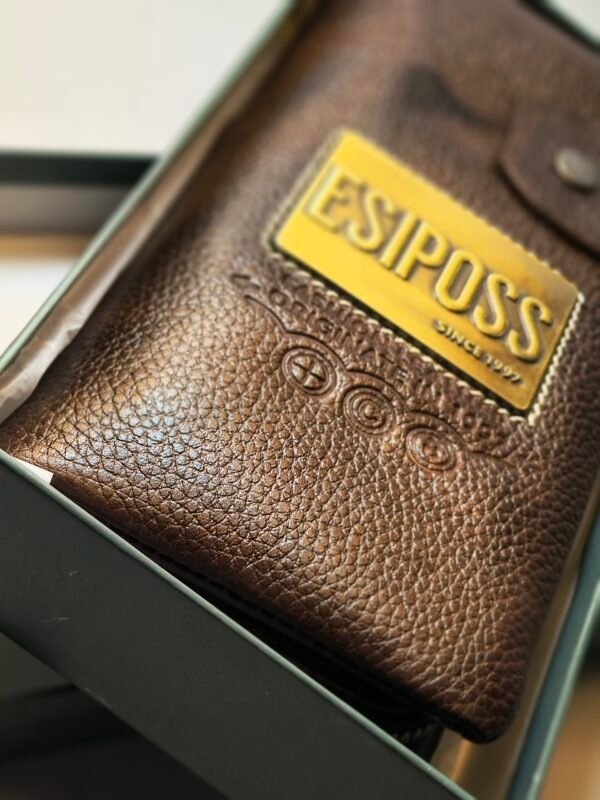 এই প্রিমিয়াম মানের ওয়ালেটটি তৈরি করা হয়েছে টেকসই ও নরম টেক্সচার্ড লেদার দিয়ে, যা দীর্ঘদিন ব্যবহারে তার আকর্ষণ হারাবে না। ওয়ালেটটির চকচকে ব্রাউন রঙ এবং সামনের দিকে থাকা গোল্ডেন ESIPOSS লোগো প্লেট এর আভিজাত্য আরও বাড়িয়ে তোলে।
