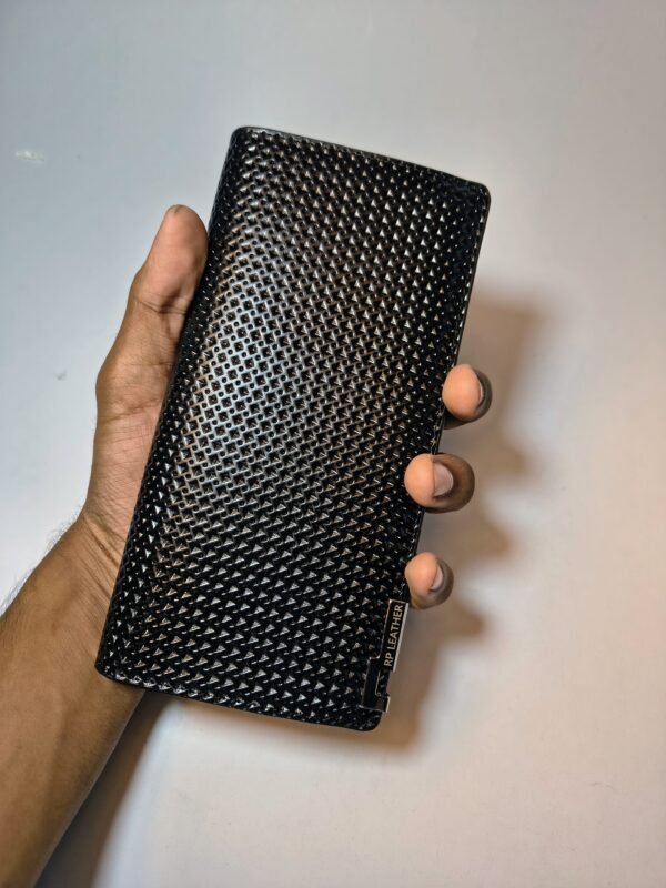 Elevate your style with this sleek and sophisticated long wallet crafted from premium quality leather. The wallet features a unique diamond-textured pattern that adds a modern touch while ensuring durability. Its slim, elongated design makes it perfect for organizing cash, cards, and essentials without bulk.